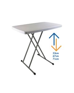 We offer a huge selection of tables in a variety of different shapes and sizes. From small 2ft tables for intimate restaurants and bars to large 6ft tables for big events such as weddings, and banquets. The majority of our tables have folding legs so they can be transported and stored easily as well as set up before an event. Some have adjustable height options, allowing you to use them at your desired height.