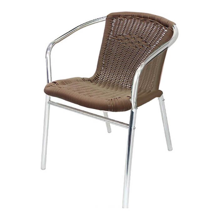 Aluminium Stacking Chair with Brown Wicker Seat and Back