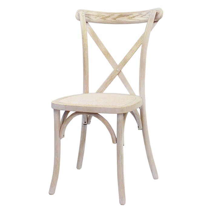 The Oak Frame Limewash Finish Crossback Chair with Rattan Seat is a stunning chair popular with weddings, christenings, and other banqueting events. A heavy-duty chair built for contract use.