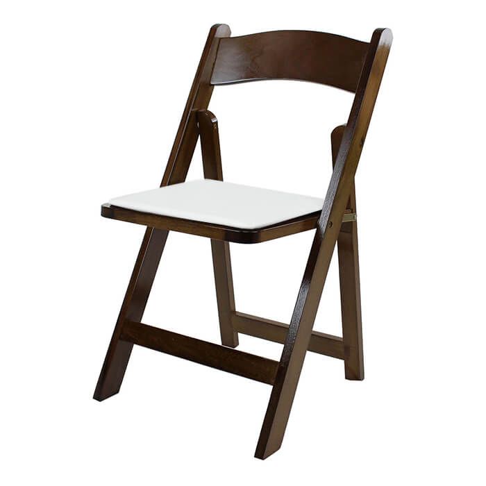 Dark Wooden Folding Wedding Chair White Seat Pad