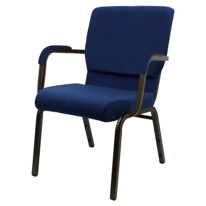 Worship Church Stacking Chair With Arms - Gold Vein Frame Blue Fabric