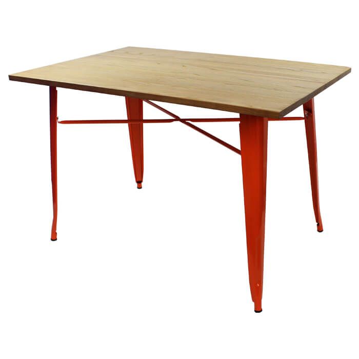 Tolix Style Dining Table - 120cm x 80cm Rectangle - Gloss Orange with Light Oak Top