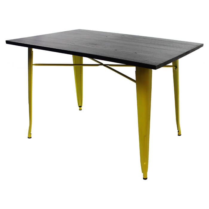 Tolix Style Dining Table - 120cm x 80cm Rectangle - Gloss Yellow with Dark Oak Top