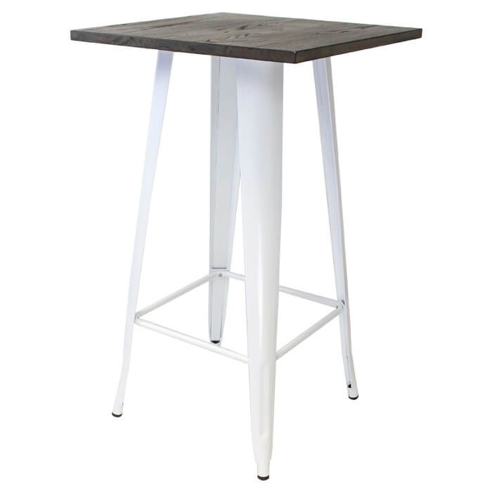 Tolix Style Bar Table | Gloss White Dark Oak Top