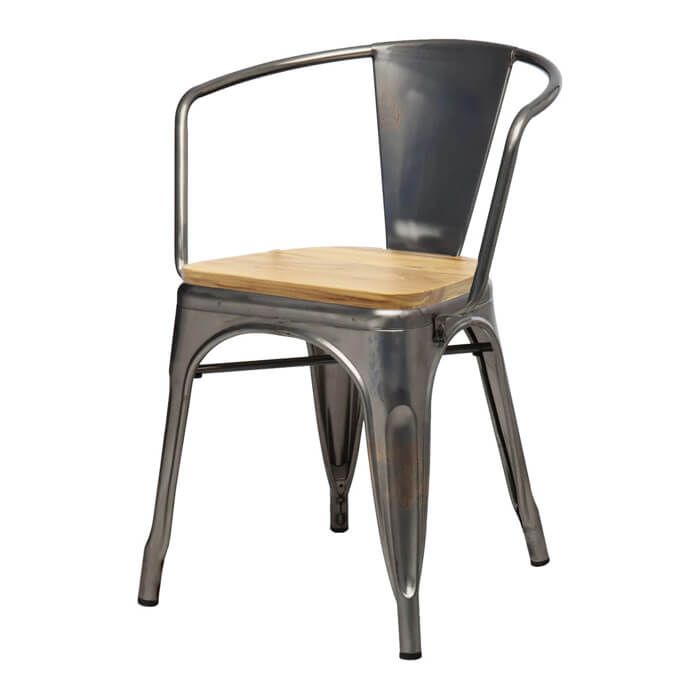 Tolix Style Bistro Armchair with Wooden Seat | Industrial Grey
