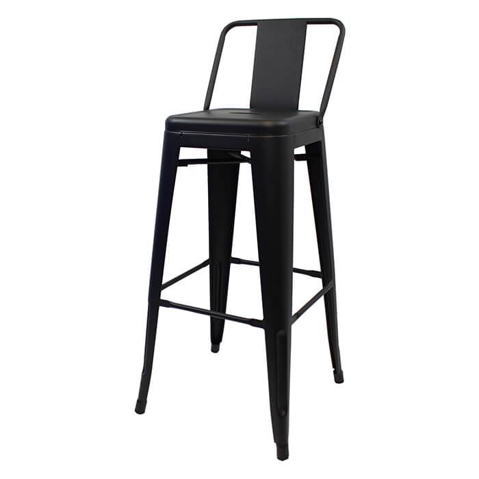 Tolix Style Bistro Bar Height Stool Low Back | Matte Black