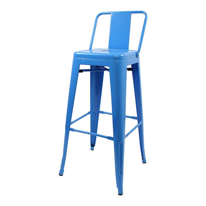 Tolix Style Bistro Bar Height Stool with Low Back - Blue