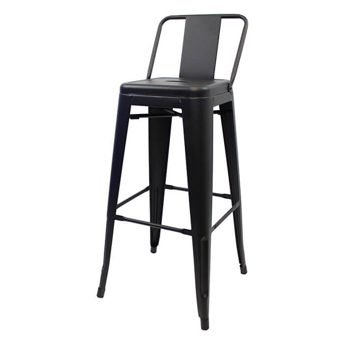 Tolix Style Bistro Bar Height Stool with Low Back | Matte Gun Metal