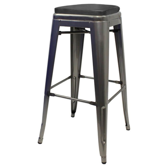 The Industrial Grey Tolix Style Bistro Bar Stool with Box Seat is a best seller. They add a modern style to the room while remaining heavy-duty and functional. Perfect for bars, cafes, bistros, and restaurants. Tolix stools can be stacked 10 high so great for space saving.