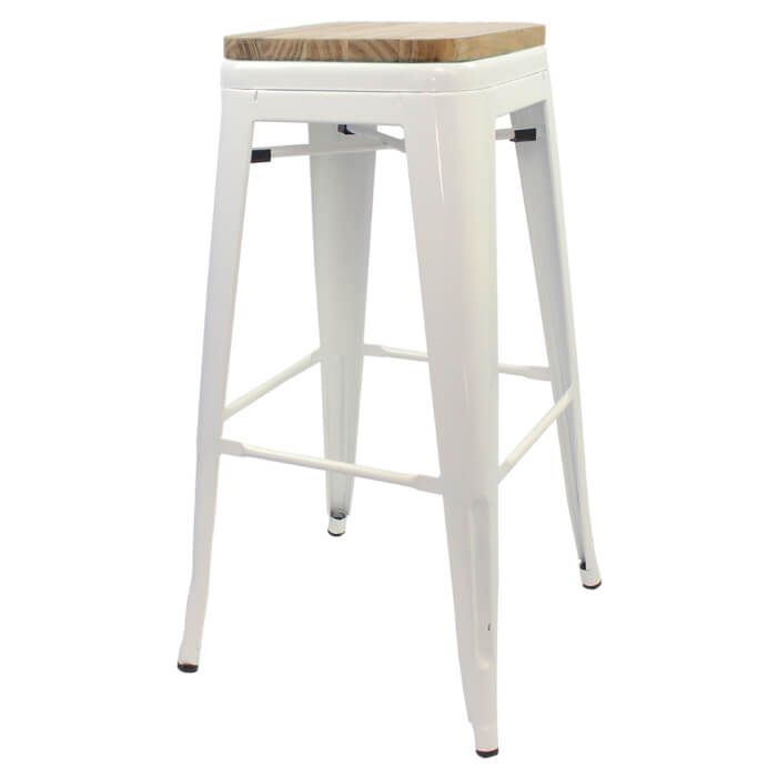 Tolix Style Bistro Bar Stool with Wooden Seat | White