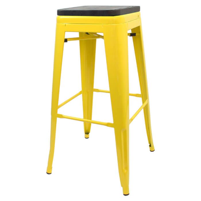 Tolix Style Bistro Bar Stool with Wooden Seat | Yellow