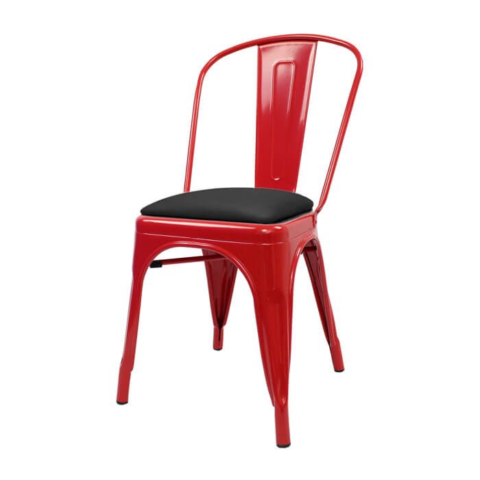 The Red Tolix Style Bistro Chair with Dome Seat is a best seller. They add a modern style to the room while remaining heavy-duty and functional. Perfect for bars, cafes, bistros, and restaurants. Tolix chairs can be stacked 10 high so great for space saving.
