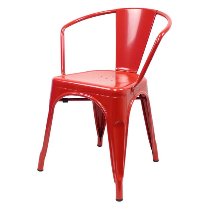 Tolix Style Bistro Chair with Arms | Red