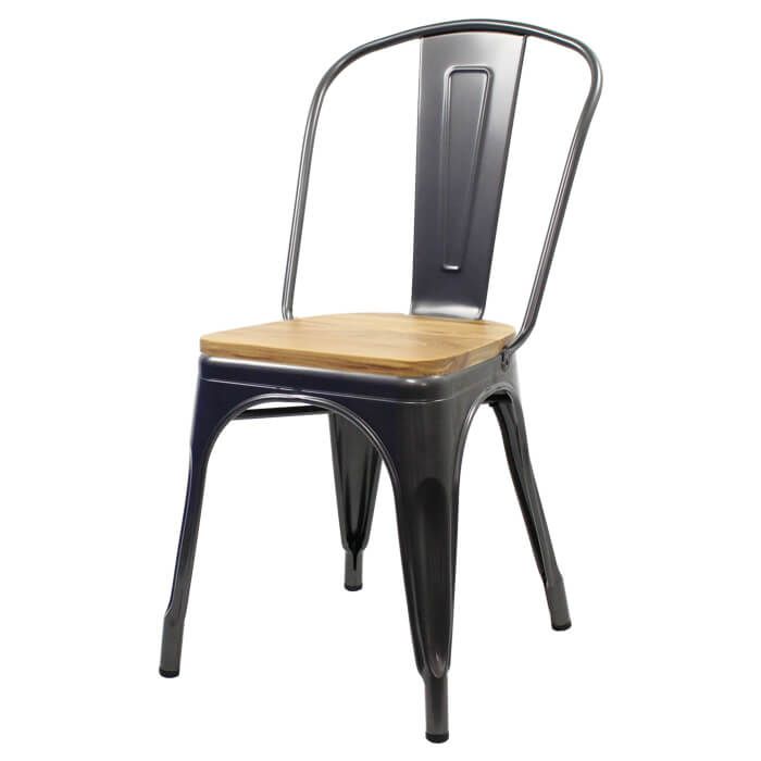 Tolix Style Bistro Chair with Wooden Seat | Gloss Gun Metal