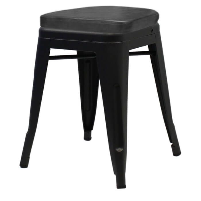 Tolix Style Bistro Low Stool with Box Seat | Matte Gun Metal
