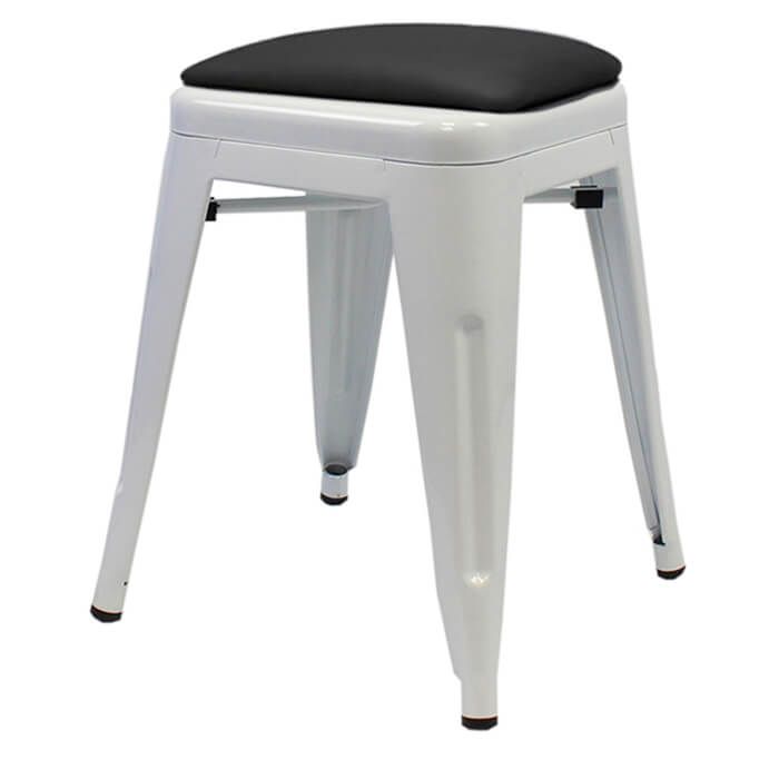 The White Tolix Style Bistro Low Stool with Dome Seat is a best seller. They add a modern style to the room while remaining heavy-duty and functional. Perfect for bars, cafes, bistros, and restaurants. Tolix stools can be stacked 10 high so great for space saving.