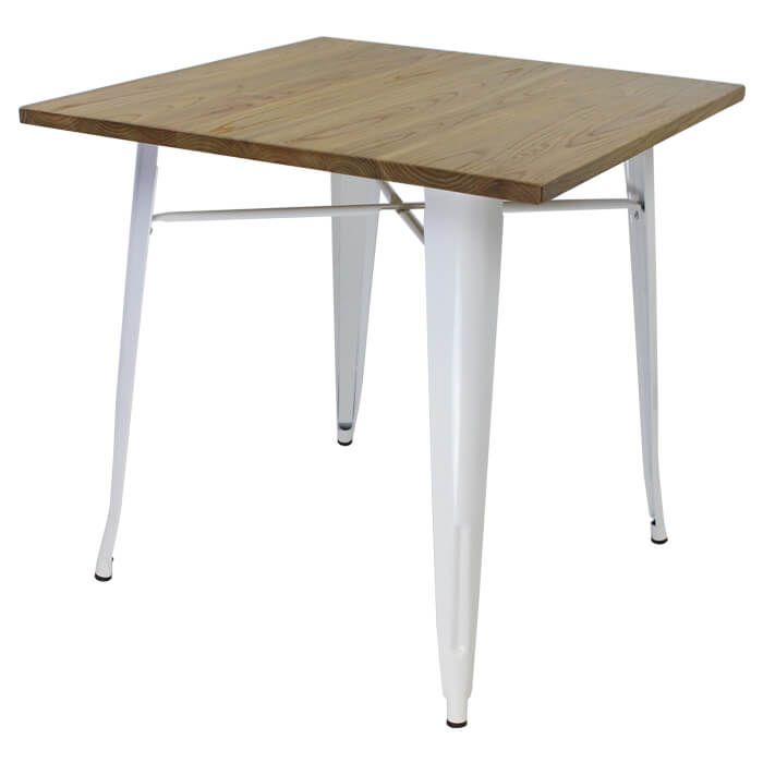 The Gloss White Light Oak Top Tolix Style Bar Table is a best seller. They add a modern style to the room while remaining heavy-duty and functional. Perfect for bars, cafes, bistros, and restaurants. Can be paired with our Tolix stools and chairs.